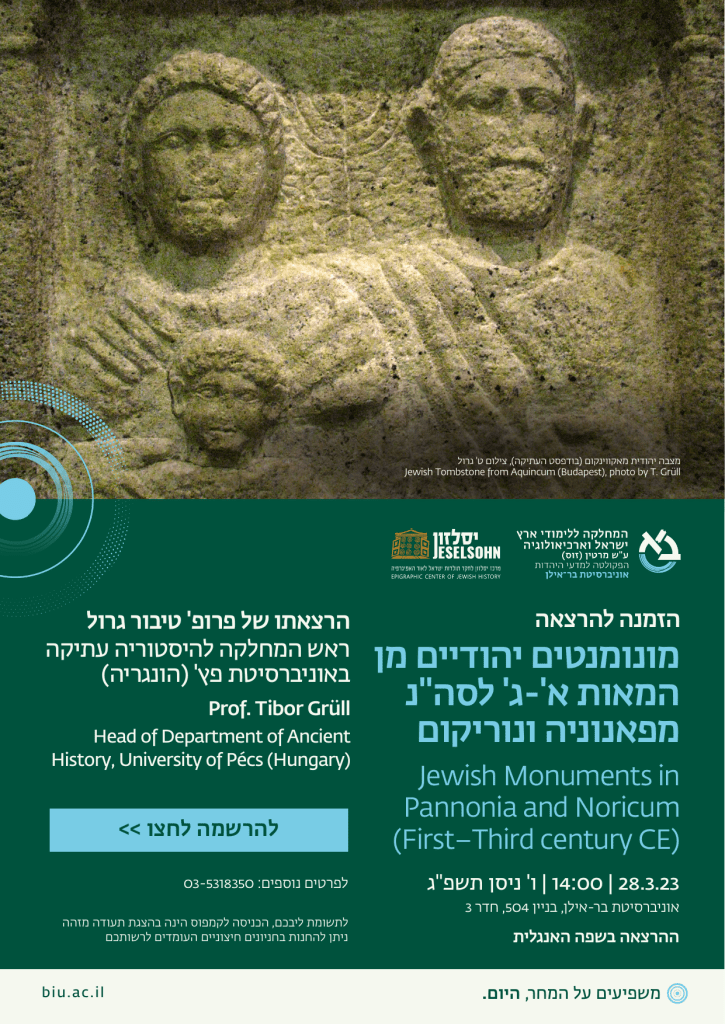 בהרצאה המתוכננת אצלנו במחלקה פרופ׳ גרול יציג מגוון ממצאים ארכיאולוגיים המלמדים על חיי היהודים ותרבותם החומרית בתקופה הרומית בפאנוניה ובנוריקום, אזור הונגריה ואוסטריה של ימינו.